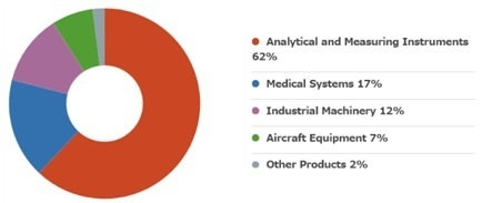 ○ 2017년도의 사업영역별 매출 비율을 보면, 분석기기 62%, 의료시스템 17%, 산업용기계 12%, 항공장비 7%, 기타 2%의 분포를 보이고 있다.