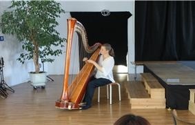 ▲ 연수단을 위해 하프를 연주한 교장[출처=브레인파크]