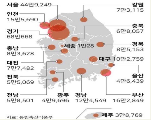 ○ 통계청의 인구주택총조사 결과에 따르면 반려동물을 키우는 가구는 312만9000가구로 전체 가구의 15.0%를 차지
