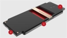 ○ 퍼즐폰 뒷면이 상·하단 슬라이드로 분리되도록 설계되어 있어 부품 교환이 가능하다. 탑재 부품은 각각 스파인(The Spine), 하트(The Heart), 브레인(The Brain)의 3가지 파트로 분리할 수 있다. 퍼즐폰의 디자인은 핀란드 정부로부터 디자인 인증을 받았고, 미국에서 친환경 전자제품 인증을 받았다.