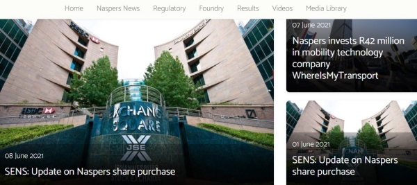 ▲내스퍼스(Naspers) 홈페이지