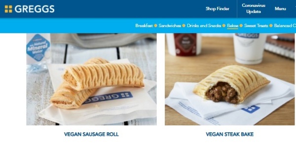 ▲비건 소시지 롤과 비건 스테이크 베이크 제품(출처 : 홈페이지)