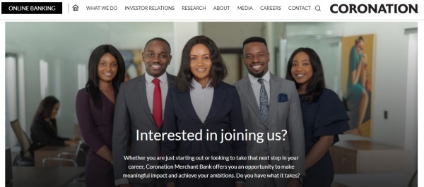 ▲코로네이션 머천트 은행(Coronation Merchant Bank) 홈페이지