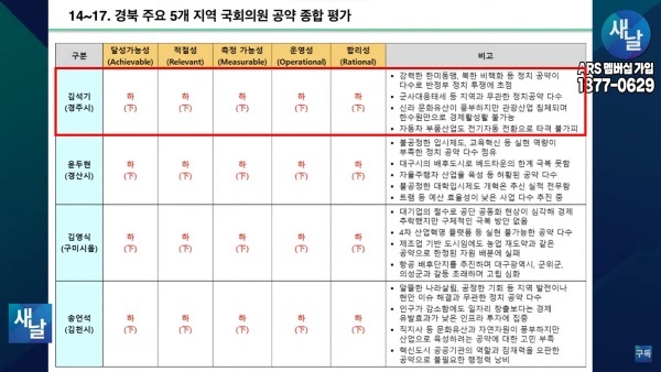 [기획-국회의원 공약 평가] ⑭새날 방송, 경상북도 경주시 김석기 의원···달성가능성 등 5개 부문 모두 하(下)