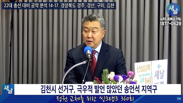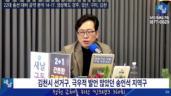 12월5일(화요일) 새날 유튜브 방송은 2020년 21대 국회의원 선거에서 당선된 경상북도 김천시 송언석 의원 등이 제시한 선거공약을 평가했다.