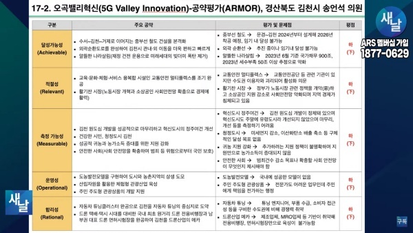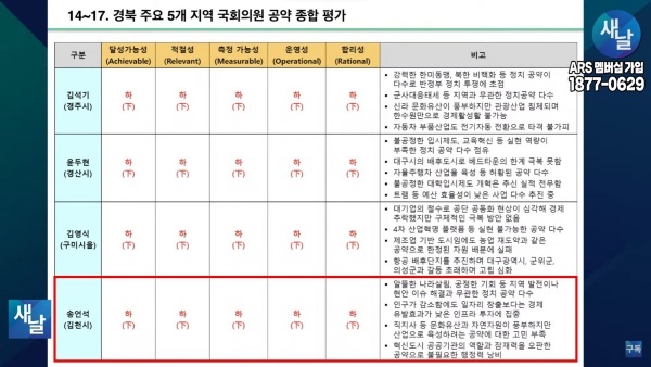 [기획-국회의원 공약 평가] ⑰새날 방송, 경상북도 김천시 송언석 의원···달성가능성 등 5개 부문 모두 하(下)