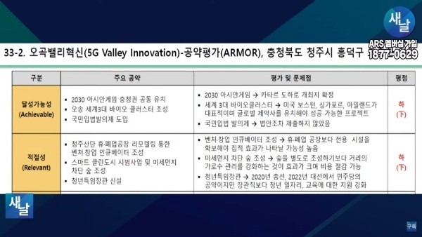 [기획-국회의원 공약 평가] 33. 새날 방송, 충청북도 청주시 흥덕구 도종환 의원···달성가능성 등 5개 부문 모두 하(下)