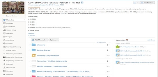 ▲ LA통합교육구 가상아카데미의 교사용 수업 관리 화면.