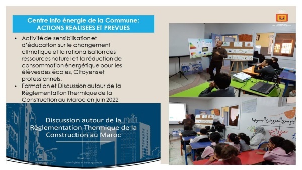 ○ 또한 지속가능 도시와 지역사회를 위해서 쉐프샤우엔 문화센터 (Cultural Center of Chefchaouen)에서 지속 가능한 에너지 관리 분야의 교육 워크숍을 진행했다. 2020년에는 △지속 가능한 건물 교육, △지속 가능한 교통 교육이 이뤄졌고, 이듬해인 2021년에는 △녹색 폐기물 회수 교육, △녹지 공간의 역할에 대한 교육을 진행했다.