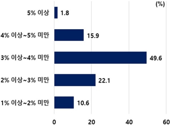 ◇ 올해 우리나라의 경제성장률은 3~4%일 것이라는 응답 비중이 49.6%로 절반 가까이를 차지함