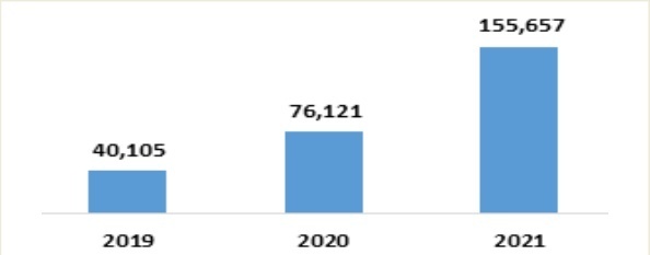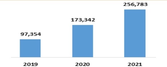 ◇ 통계청의 ‘온라인 쇼핑 동향’ 자료에 따르면, 음식서비스 부문의 온라인쇼핑 거래액은 ’21년 기준 25조6,783억 원으로 전년(17조3,342억 원) 대비 48.1% 증가