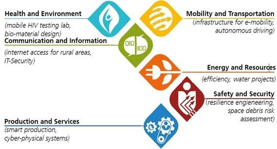 사회에 도움이 되고 기업에서 직접 적용 가능한 응용과학 중심 연구로 응용을 전제로 한 연구와 독일 국방부를 위한 연구가 중심이다.