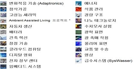 ○ 협회 산하에 있는 67개 연구소는 △정보통신 기술 △생명과학 △미세전자공학 △광학 및 표면공학 △생산공학 △재료공학 및 소재부품 △국방과학 등 7개 그룹으로 나눠져 있고, 이 연구소들은 모두 융합연구와 협력이 가능한 시스템으로 운영하고 있다.