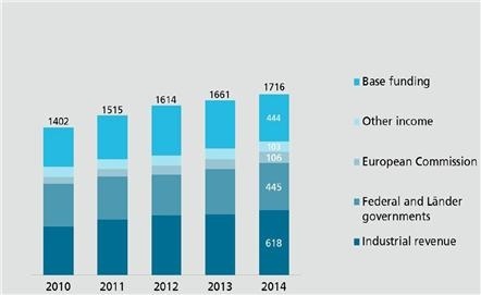 ○ 2014년 연구 관련 예산으로는 17억 유로 이상이 책정되어 있으며 2013년에 비해 기업계약 연구이익이 7%, 유럽 내 연구이익이 15% 상승했다.