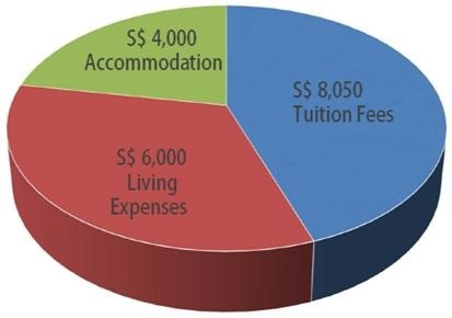 ○ 학부생들의 연간 지출비용은 수업료(Tuition Fees), 생활비(Living Expenses), 주거비(Accommodation)을 포함해서 약 S$ 18,050*가 소요됨