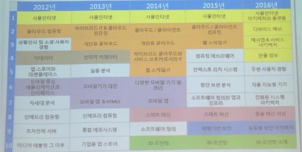 실리콘밸리의 현재 기술 트랜드는 2012년부터 2016년까지의 트랜드이다. 현재의 10대 기술 트랜드를 기술 트랜드와 메가 트랜드를 활용해서 정리했다.