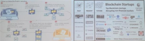 중앙에 집중되어 있는 서브가 해킹을 당하면 천문학적인 손실이 발생하고 이를 막기 위해 금융기관들은 유지보수에 많은 비용을 지출하고 있는데 블록 체인은 암호 코드를 넣으면 증권사, 은행, 소비자가 동일한 정보를 서로 볼 수 있어 특정 정보가 특정 서브에 있는 것을 막아준다. 실리콘밸리에서는 블록 체인 스타트업도 많이 일어나고 있다.