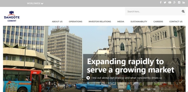 ▲단고테 시멘트(Dangote Cement) 홈페이지
