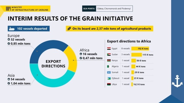 ▲흑해 곡물 수출 현황 그래프(출처: 인프라시설 장관인 올렉산드르 쿠브라코우 트위터)