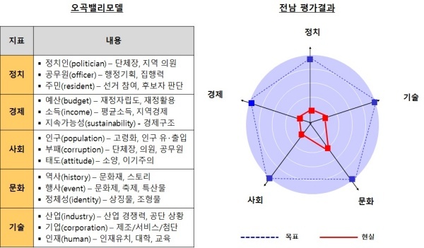 전남의 자치행정도 PK의 아성인 경상남도와 마찬가지로 대지주 경영의 농업경제 특징이 주도하는 지역정치, 농업에 의존하고 있는 후진적인 경제구조, 인구 감소로 인한 절체절명의 위기 속에서도 사적인 이익만 추구하는 공무원 사회, 잘못된 관광정책, 존폐 위기에 몰린 지역대학으로 인재 육성 불가능 등이 문제점으로 드러났다. 세부 내역을 간단하게 요약하면 다음과 같다.
