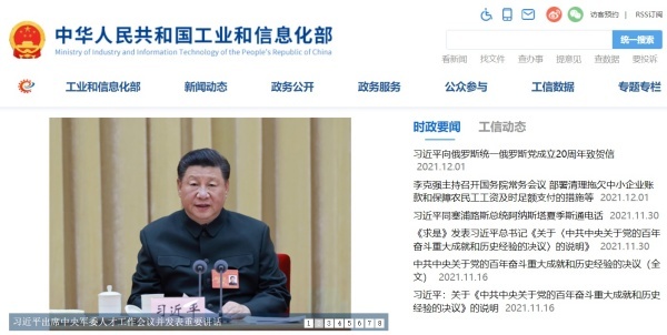 ▲ 공업정보화부(工?和信息化部) 홈페이지