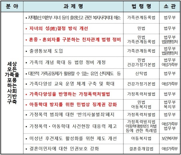 달라진 가족에 대한 생각을 뒷받침하기 우해 관련 법률 개정 필요, 미혼모와 미혼부의 출생신고나 복지지원도 제도개선으로 해결 가능