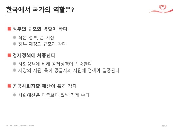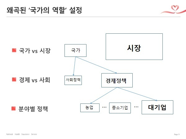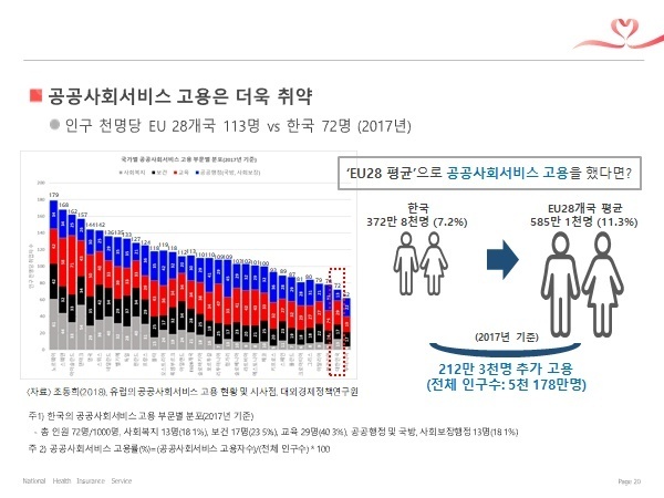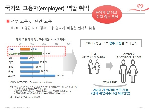 국가의 역할이 경제에 치우쳐 있어서 국민들이 피해를 입어, 정부 고용이 OECD에 비해 현저히 낮지만 논의조차 되지 못해