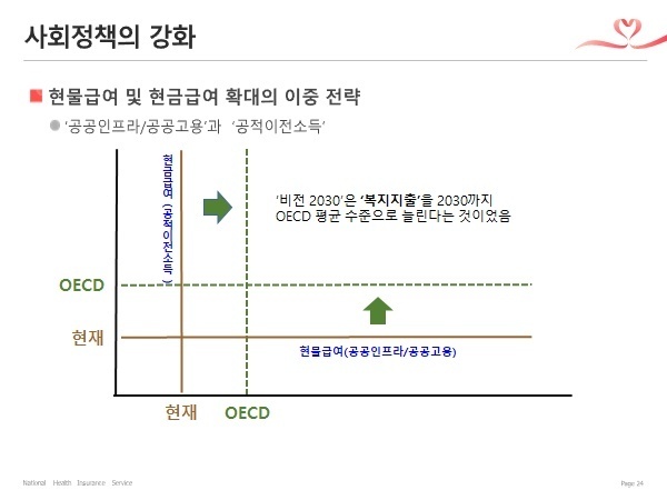 - 공공인프라를 늘리자는 말은 공공의료의 강화라는 것을 예로 들면 쉽게 이해 할 수 있습니다. 공공의료뿐만 아니라 공공복지, 보육, 교육 등 광의의 보건복지 인프라가 모두 해당됩니다.